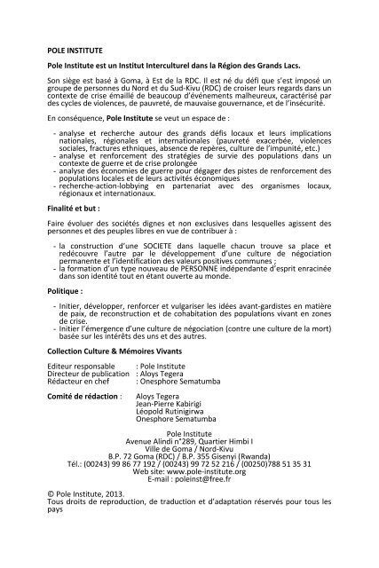 Gouvernance Et Refondation De L Etat En Rdc Pdf Pole Institute